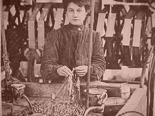 | On met les cocons dans un grand récipient d'eau bouillante (pour les ramollir), où des petits balais de bruyère tournent sans cesse, afin d'attraper les baves. |