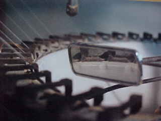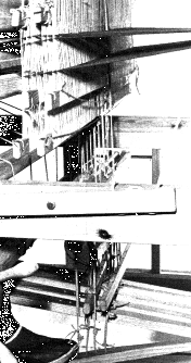 ( la tisseuse ) Pour le tissage les fils sont tendus et enroulés autour d'un tambour (ourdissoir), pour former la chaîne du tissu. Ces fils traversent des cadres qui se soulèvent ou s'abaissent pour laisser passer la "navette" ou la "lance" avec le fil de trame. |